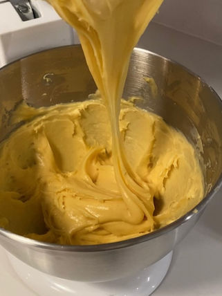 Retirez la casserole du feu, ajoutez la gélatine essorée. Versez cette crème dans un saladier et attendre qu'elle refroidisse (environ 45°) pour y ajouter le beurre en petits morceaux en l'intégrant avec un mixer plongeant.