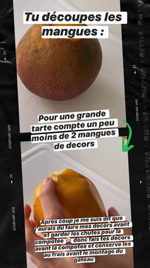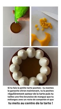 Composition : Pâte sucrée, Crème d'amandes, Compotée de mangues, mangues fraîches et Ganache montée citron